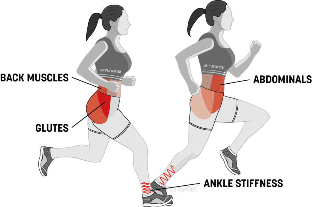 Dynamic stability is largely determined by the strength and coordination of your stabilizing muscles (primarily the abs, back, and glutes). These muscles work together to control movement and maintain alignment while you run. Conditioning these muscles enhances running efficiency while reducing the risk of overuse injuries.