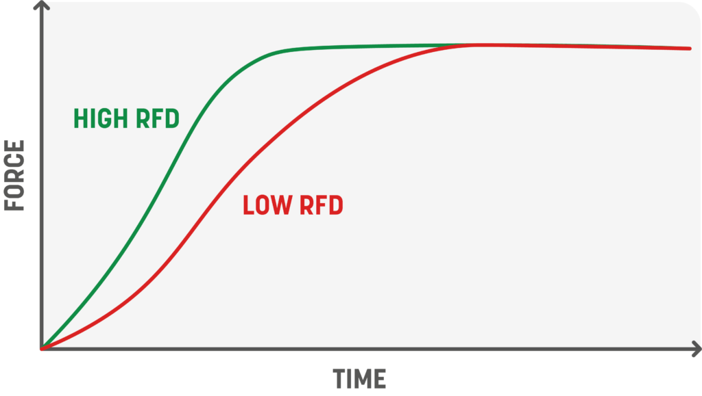 Rate of force development (RFD) refers to how quickly you can generate force, a critical ability when movement time is limited. Improving RFD means training the neuromuscular system to activate muscles more quickly and efficiently.